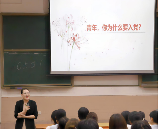 讲座开篇,唐晨诗博士围绕“信仰与利益”展开论述,深刻解读了自我实现的本质,引导新生将个人发展与时代使命相融合,让大家清晰认识到入党是提升自我、追求卓越的重要路径。随后,她从中国共产党的性质、宗旨、指导思想及最高理想等方面进行系统讲解,着重强调“中国共产党始终是中国人民和中华民族的主心骨与坚强后盾”。针对当前社会中存在的“躺平”“内卷”等负面情绪,唐晨诗博士积极引导同学们摒弃消极观念,以党的先进理论为指引,激发自身进取动力,打破“人生价值单一化”的局限,主动将个人理想融入到中华民族伟大复兴的壮阔征程中。