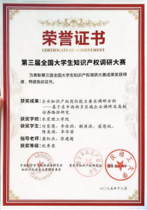 在2025年第三届全国大学生知识产权调研大赛中,知识产权学院的两支队伍凭借扎实的调研能力与创新的研究视角,均荣获优秀奖。